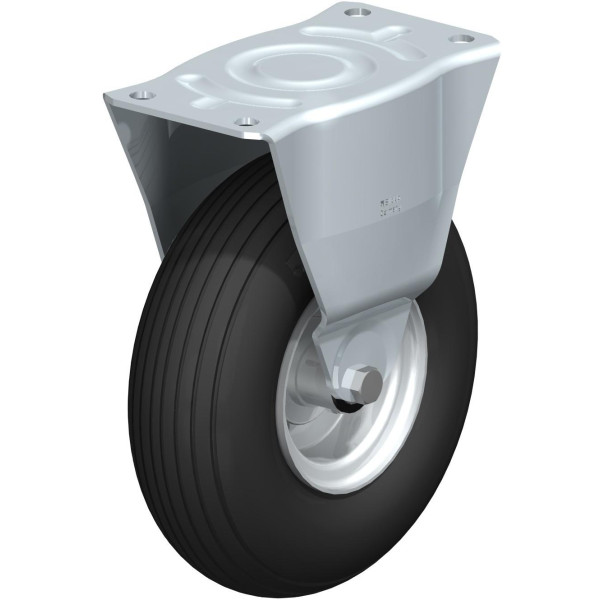 Bánh xe BLICKLE càng cố định, bằng thép cán, tải trung, kiểu lắp tấm, dạng bánh hơi, niềng thép.