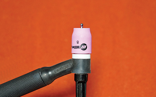 Điện cực tungsten có nhiều đường kính khác nhau — từ 0.020 inch đến ¼ inch. Bạn cần chọn đường kính đủ lớn để chịu được dòng điện tối đa sử dụng cho từng công việc hàn. Những điện cực có đường kính nhỏ hơn sẽ dễ khởi động hồ quang hơn khi sử dụng ở dòng điện rất thấp. Với công việc của tôi, vốn bao gồm nhiều dạng hình học và kích thước khác nhau, tôi sử dụng điện cực đường kính 3/32 inch. Tôi không gặp bất kỳ vấn đề nào khi khởi động hồ quang, kể cả khi hàn tôn mỏng, và tôi vẫn có thể hàn được những kim loại dày đến ¼ inch hoặc hơn.